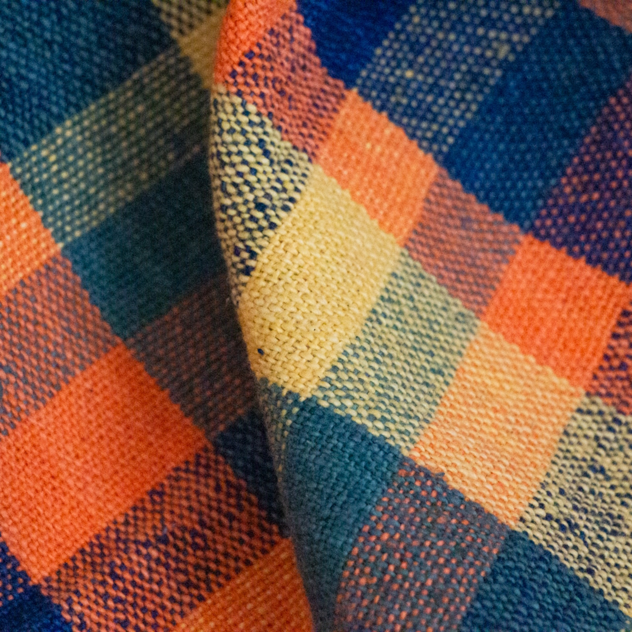 商品名 : ラオス×手染め手織りの生地(格子柄1)