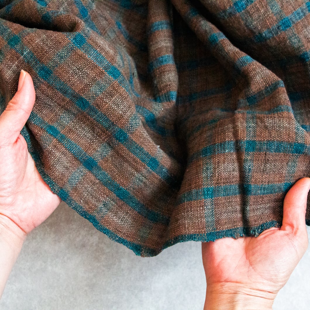 商品名 : ラオス×手染め手織りの生地(格子柄2)