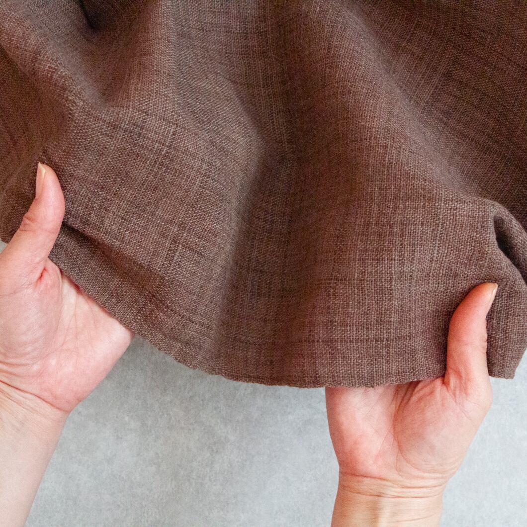 ほどよい厚みがありますので、ボトムス、ワンピースやジャケットなどのお洋服としてはもちろん、インテリアファブリックとしてもおすすめです。
