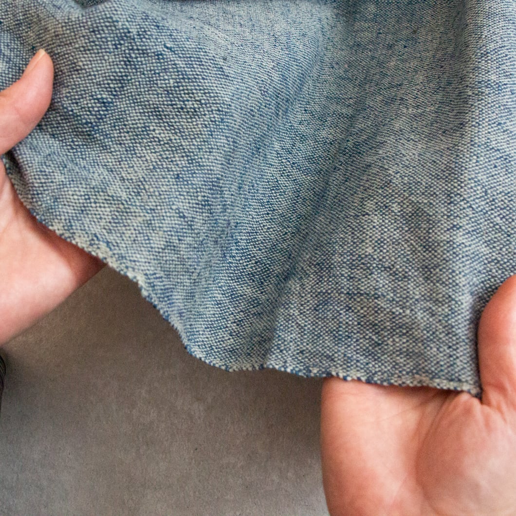 村人の手で一つ一つ丁寧に作り上げる生地で、シワや、色むら、織むらがございます。