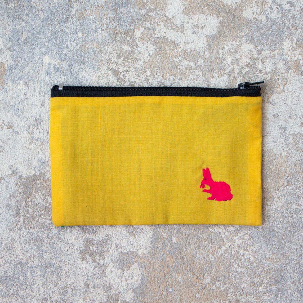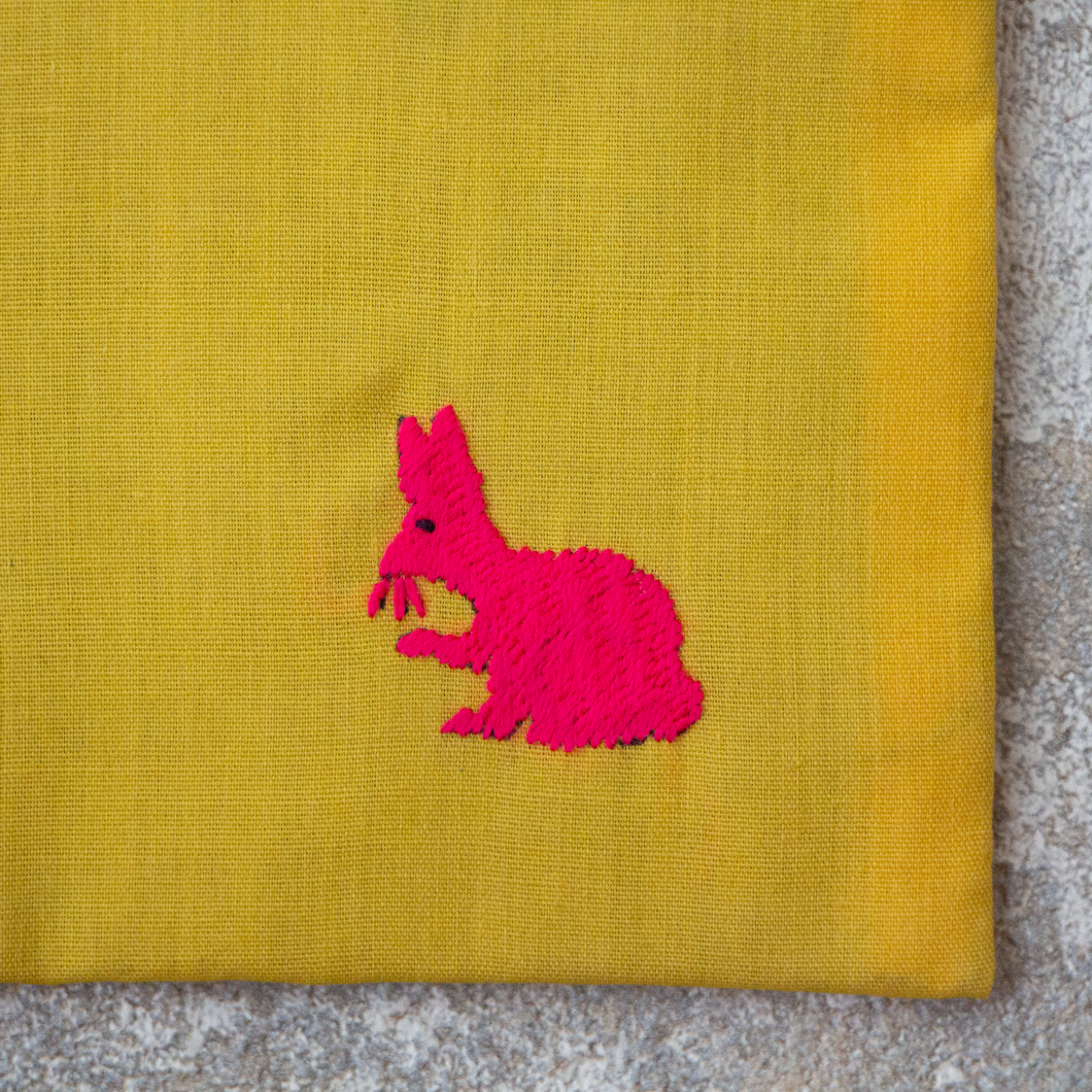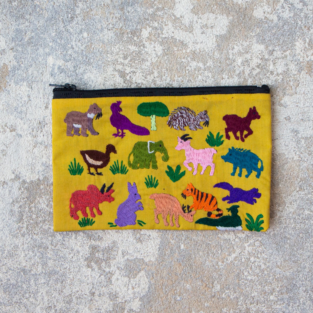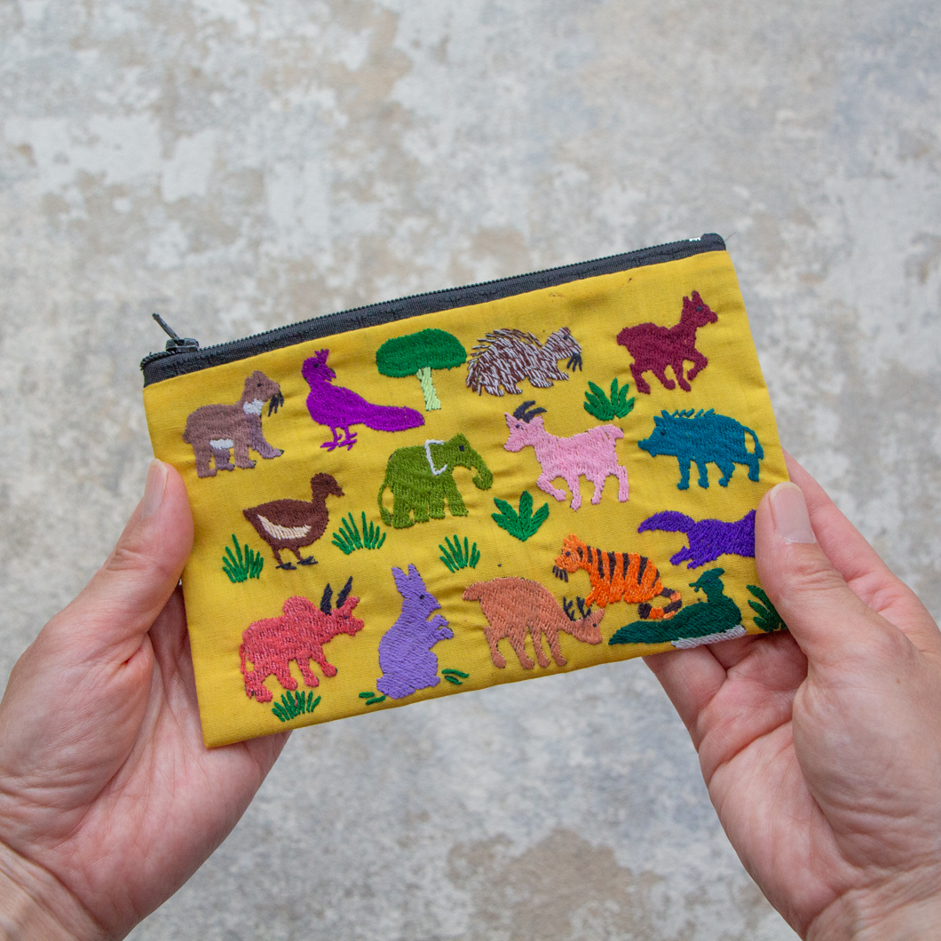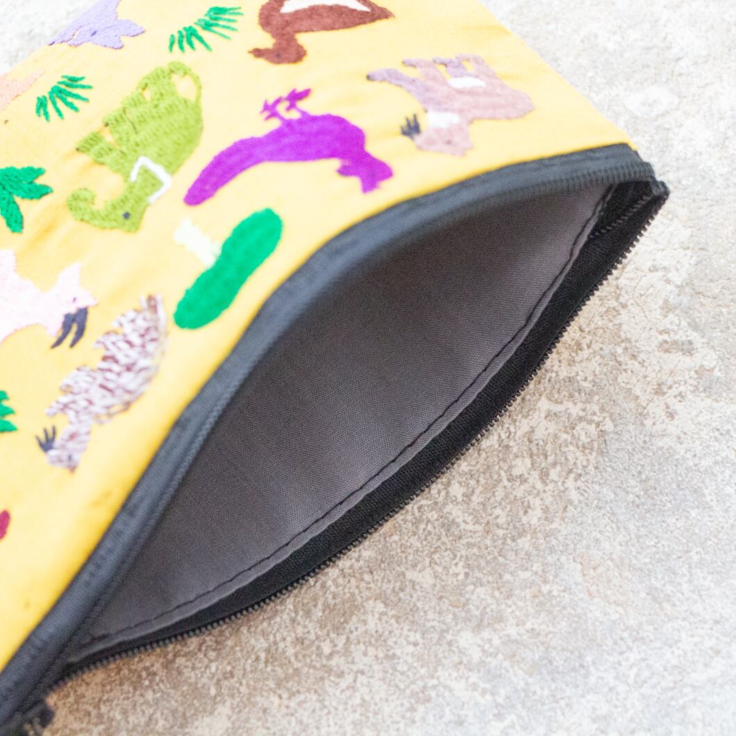ラオス×モン族のアニマル刺繍ポーチM (イエロー)