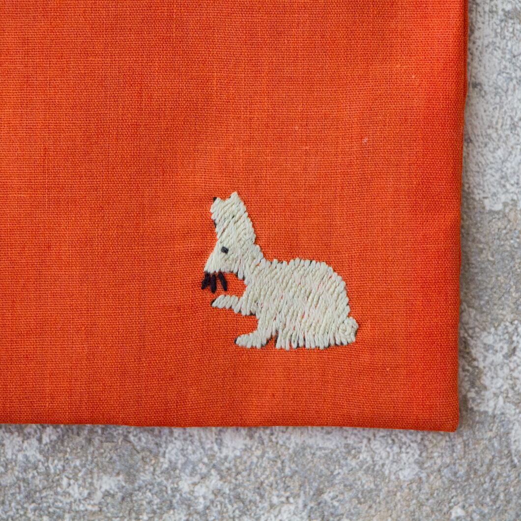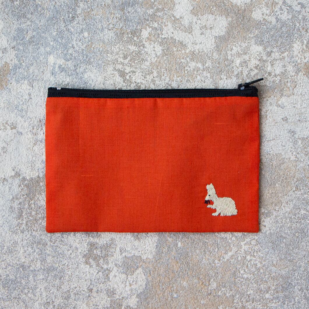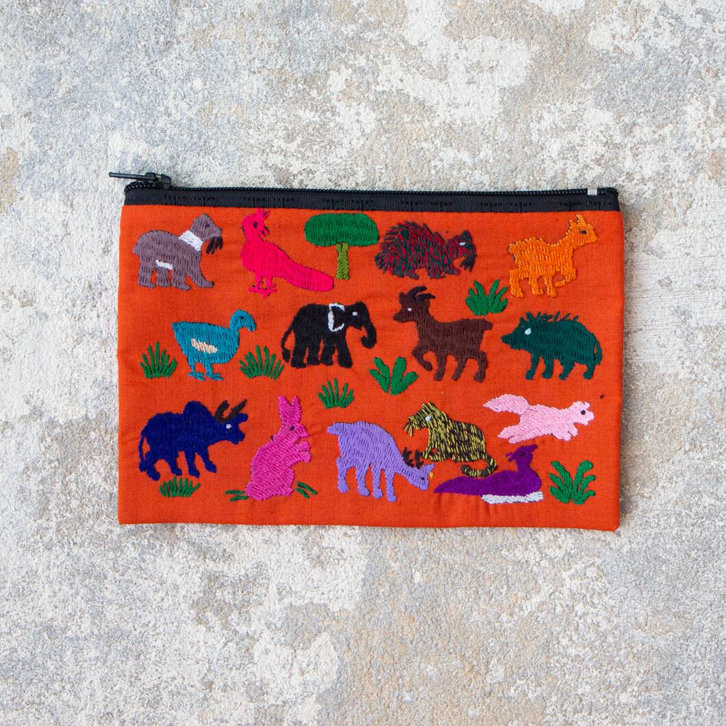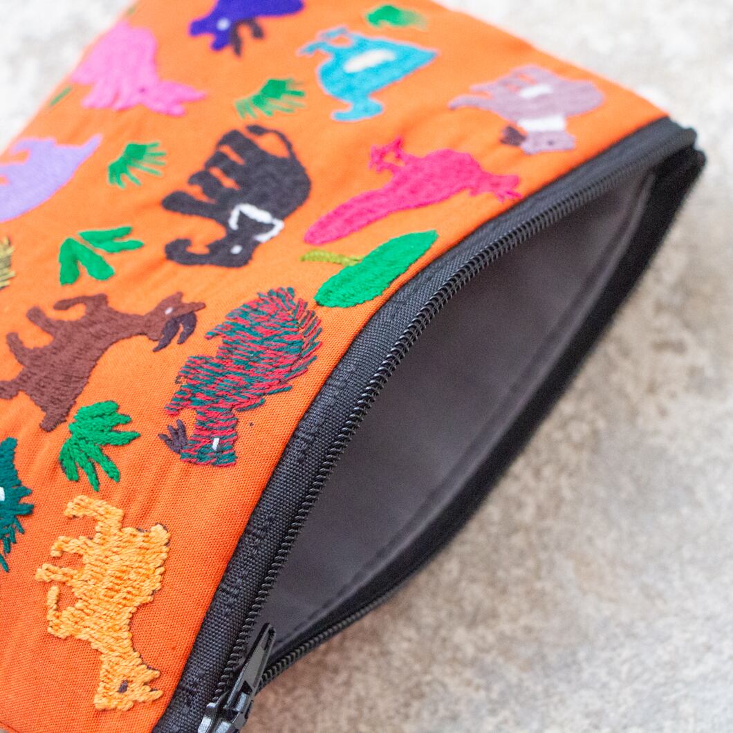 ラオス×モン族のアニマル刺繍ポーチM (オレンジ)