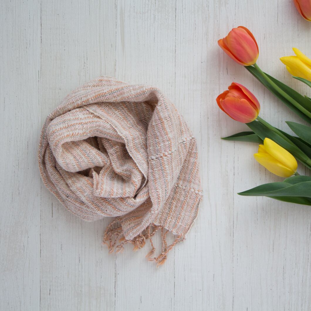 さまざまな色の糸を組み合わせたストライプ模様ですが、落ち着いた色合いなので、どんなスタイルにも合わせやすいのがおススメポイントです。